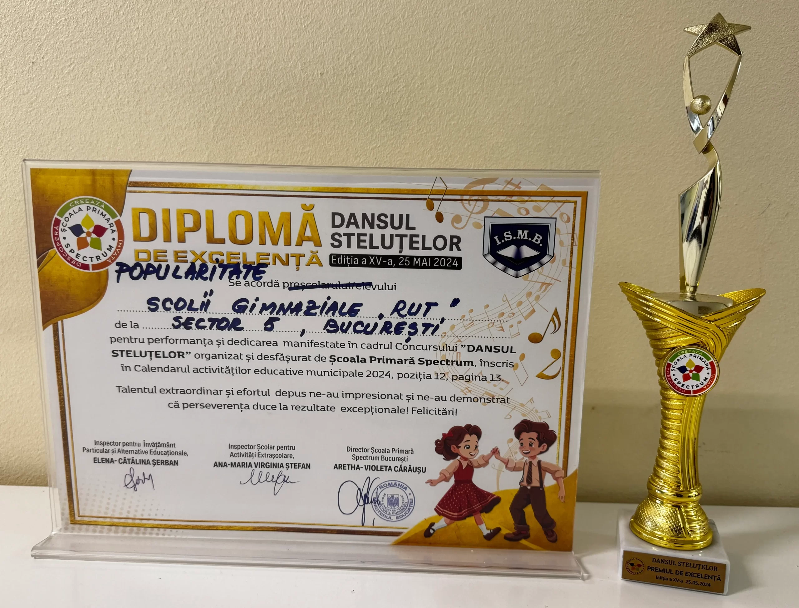 Pe data de 24 mai 2025, Școala „Rut”, reprezentată de 9 elevi din clasele pregătitoare și întâi, coordonați de doamna învățător Costache Emanuela, a particiat la ediția a XVI-a a concursului de dans „Dansul Steluțelor” organizat de Școala Spectrum, câștigând locul I🥳.